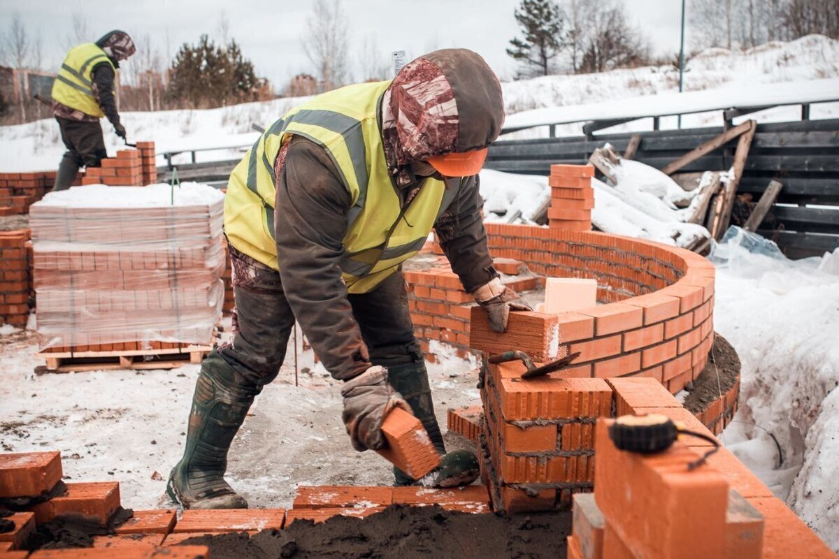 Адрес строительства: улица Клюева, 27. Работы начались с доставки кирпича и кладки стен.