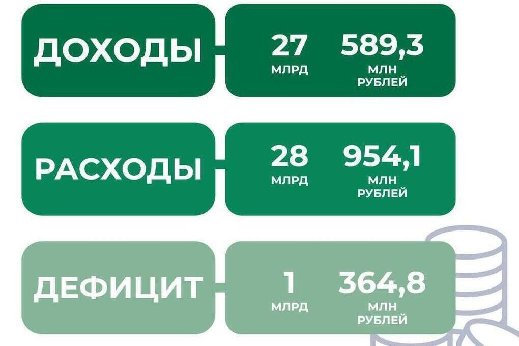 Согласно представленному проекту, в 2026 году планируются доходы в размере 27,6 млрд рублей и расходы — 29 млрд рублей. Дефицит составит 1,36 млрд рублей.