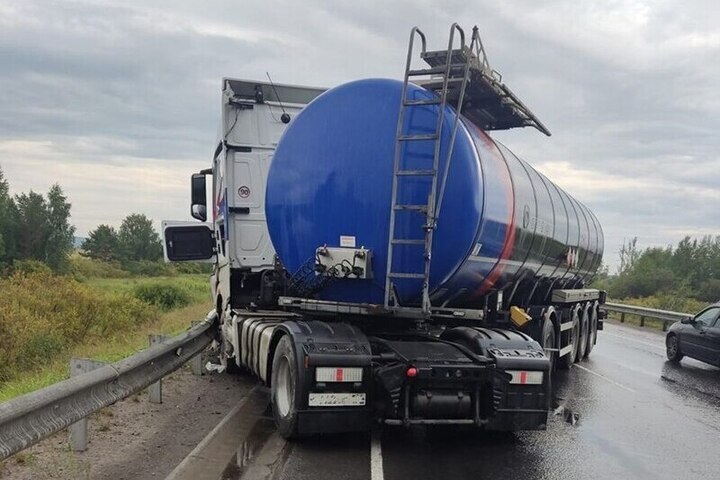 В результате аварии автомобиль в составе цистерны-прицепа получил повреждения. Но человеческих жертв удалось избежать.
