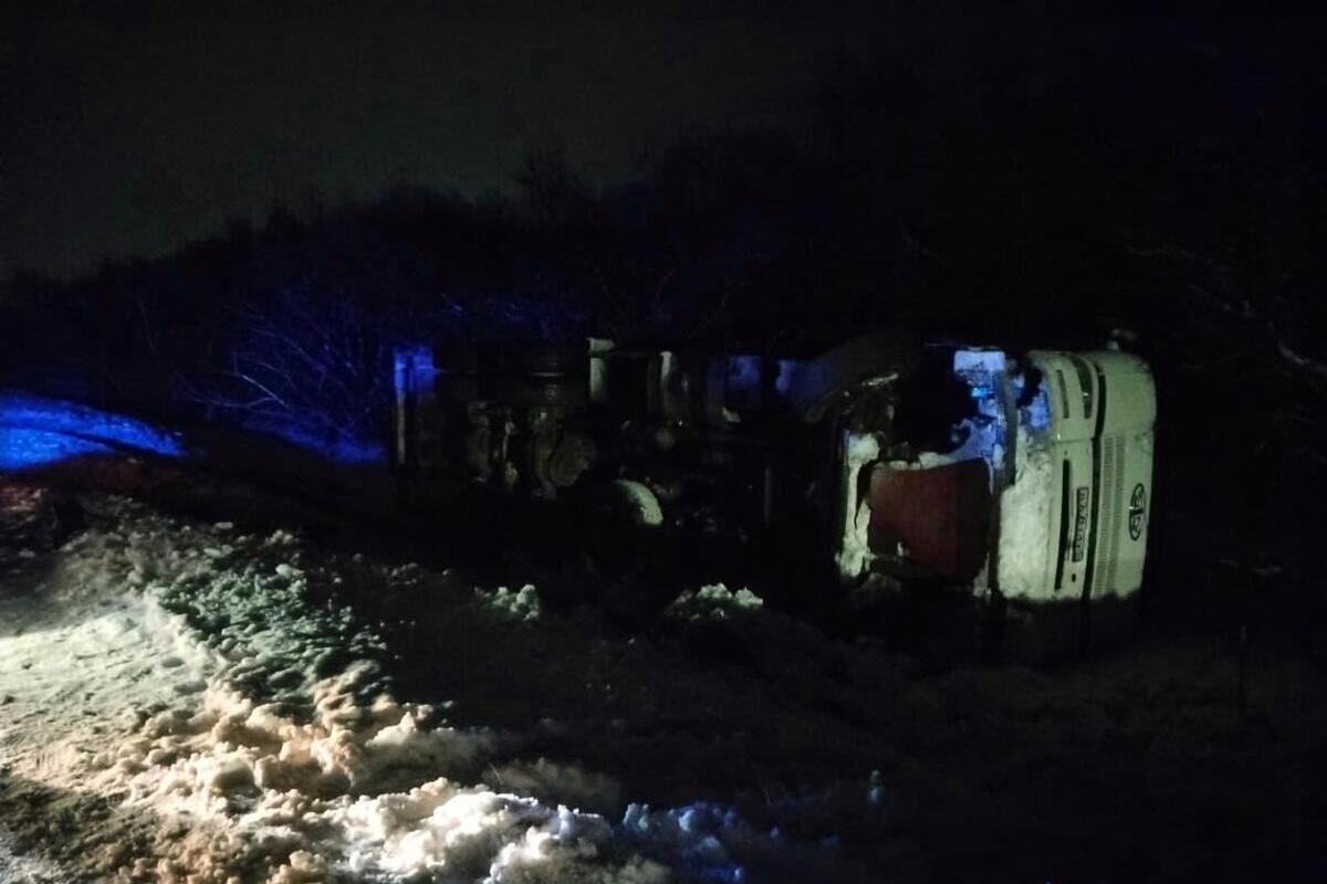 По предварительной информации, 43-летний водитель грузовика марки "FAW" не справился с управлением, допустил съезд с проезжей части в левую сторону от дороги. В результате машина перевернулась.