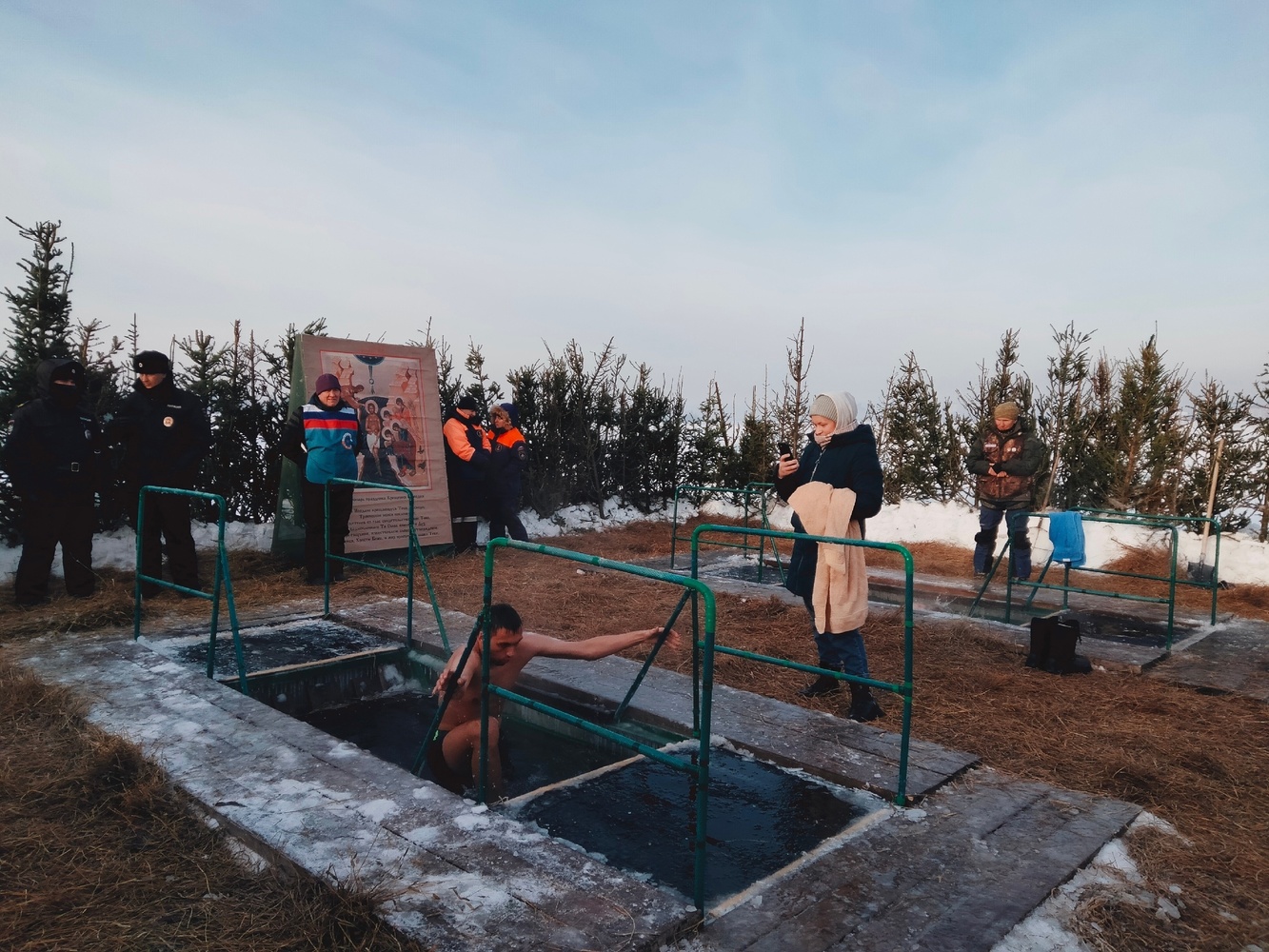 Строго говоря, в одном месте в Томске власти оборудовали 2 проруби, чтобы все желающие окунуться, не томились в ожидании.