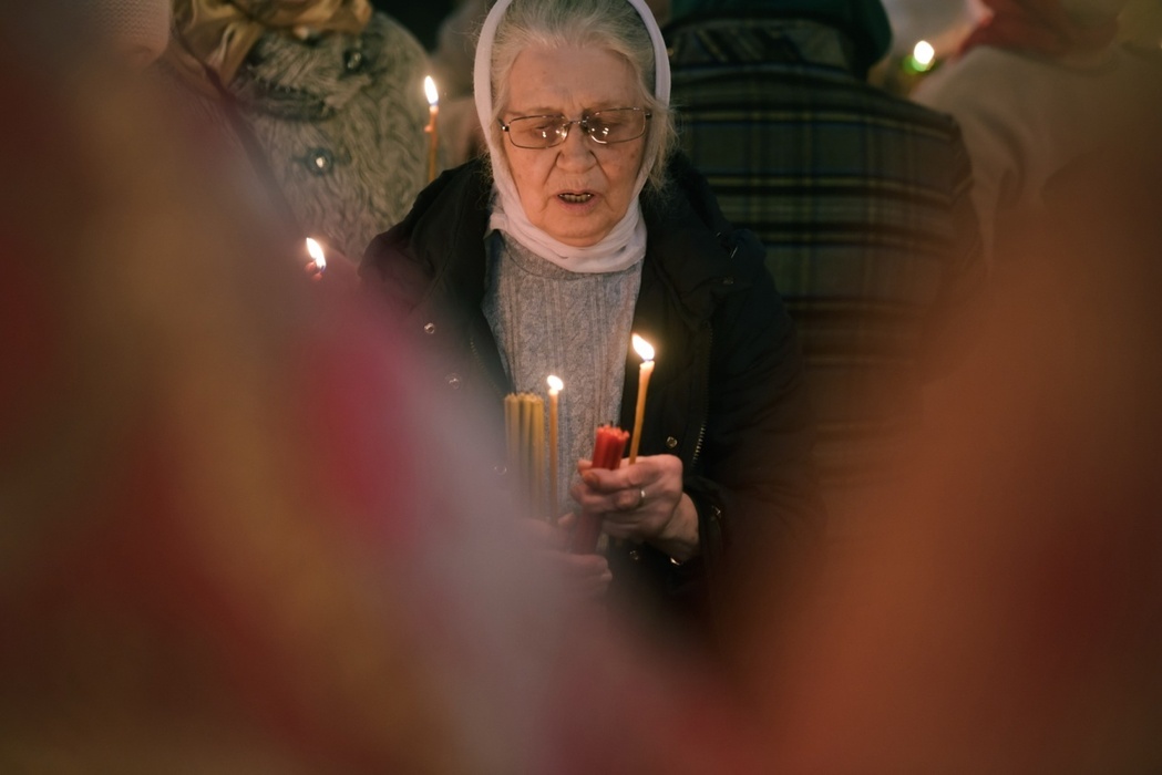 Благодатный огонь прибыл в Томск 21 апреля 2025 года. Несмотря на холодную погоду за окном, в храм пришли сотни верующих.