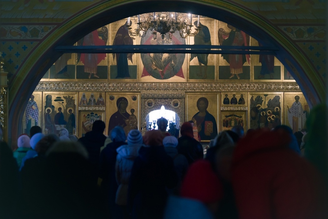 Благодатный огонь прибыл в Томск 21 апреля 2025 года. Несмотря на холодную погоду за окном, в храм пришли сотни верующих.