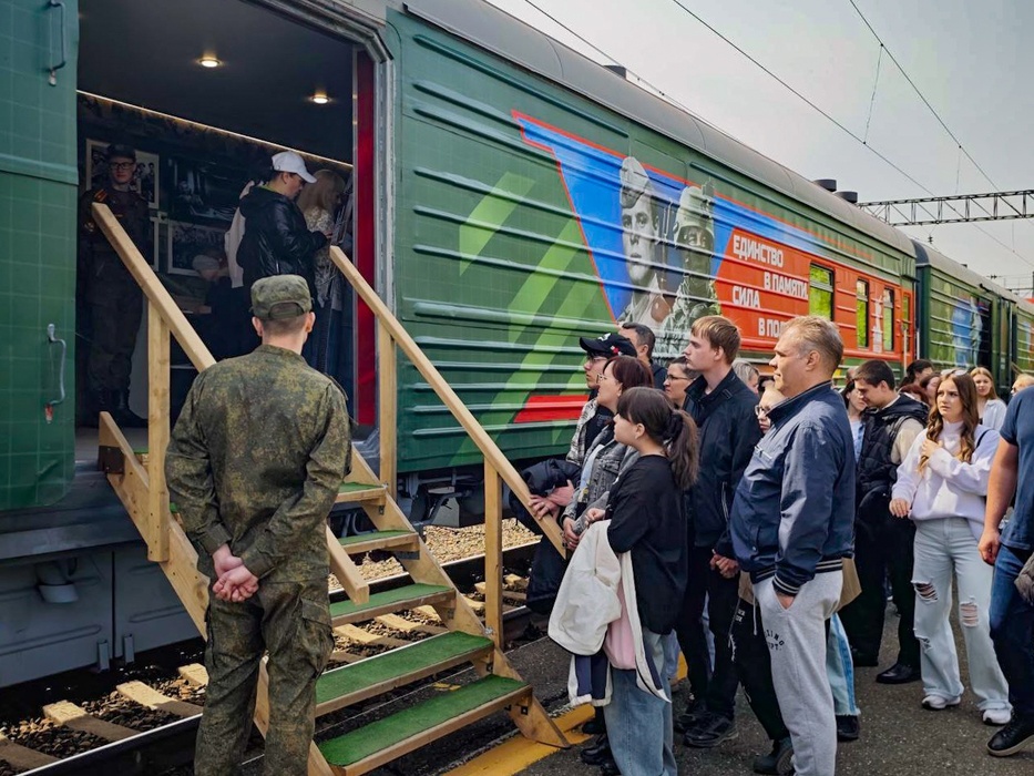 На железнодорожный вокзал Томск-1 18 мая прибыл тематический поезд Минобороны «Единство в памяти. Сила в подвиге!». Передвижной музей состоит из 10 вагонов, каждый из которых посвящен отдельной тематике, где рассказывается о героизме предков и современных защитниках Родины. Посетители могут увидеть различные экспонаты, а также получить копию газеты «Известия» от 9 мая.