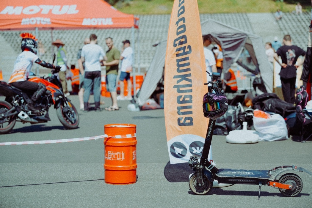 Участники соревновались в прохождении трассы, усыпанной конусами, выполняя различные фигуры и маневры на время. Зрители активно поддерживали спортсменов, наблюдая за их виртуозным управлением техникой.