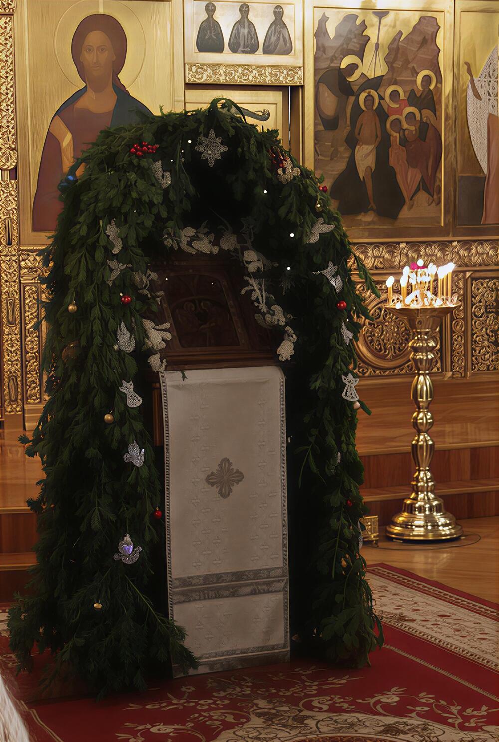 В преддверии праздника преобразились и территория собора. Ещё 3 января неравнодушные прихожане совместно с провели здесь уборку снега, нарядили ели. У входа в храм томичей встречал Рождественский вертеп - композиция, воспроизводящая сцену рождения Иисуса Христа в пещере. Создатели инсталляции детально запечатлели знакомый сюжет, добавив библейские образы и пихтовые ветви. Здесь томичи также могли зажечь свечи.