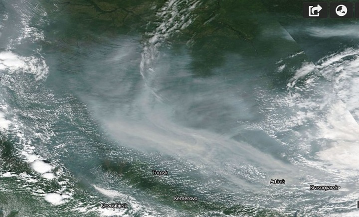Задымление в Томской области и прилегающих регионах по космосникам НАСА