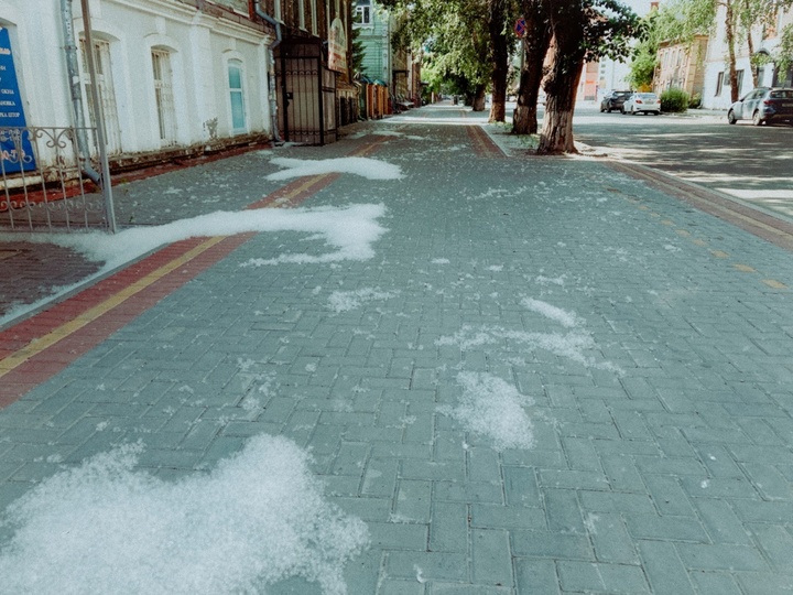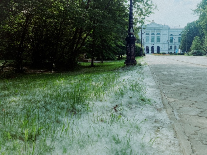 Тополиный пух укрыл улицы Томска пушистым покрывалом - фото