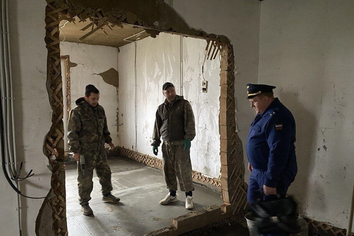 Выездную проверку на объекте провёл районный прокурор Юрий Бессмертных. Сейчас специалисты бетонируют полы, меняют инженерные системы, укрепляют фундамент и готовят стены к отделочным работам.