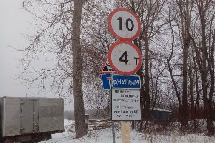 Переправа допущена к эксплуатации после необходимых замеров прочности льда. По ней разрешено движение транспорта с предельно допустимой общей массой до 4 тонн.