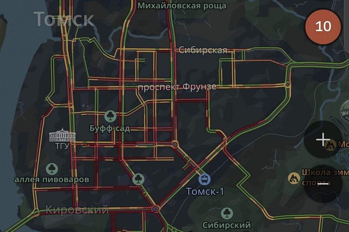 Сервис 2ГИС оценил загруженность дорог в городе на максимальные 10 баллов из 10. Об этом сообщает телеграм-канал «Регион-70 Томск».